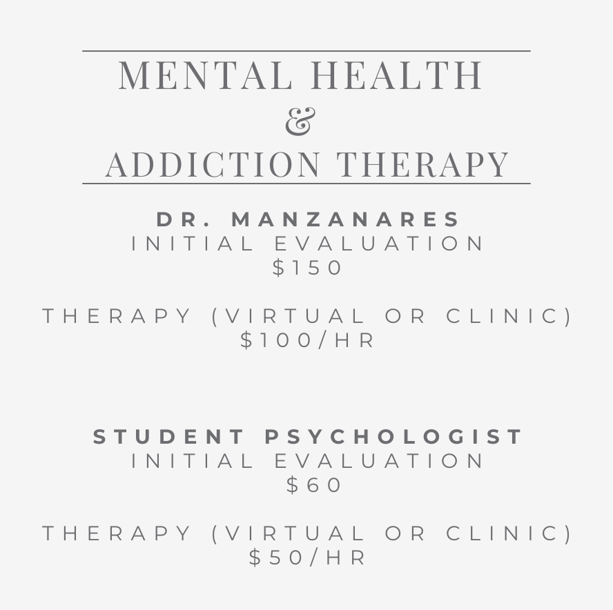 Student psychologist are advanced level psychology students that provide individual therapy under the direct supervision of Dr. Manzanares.